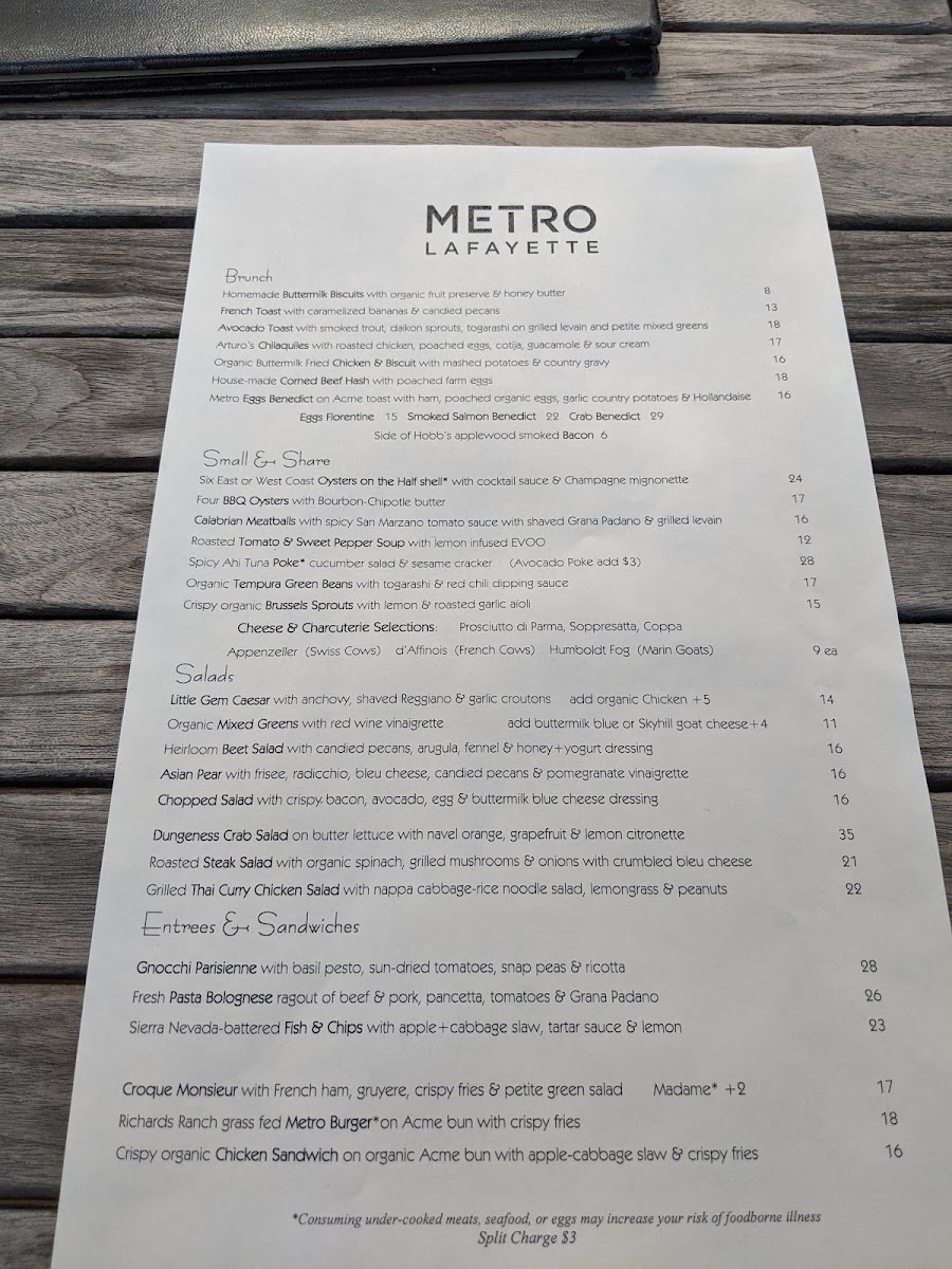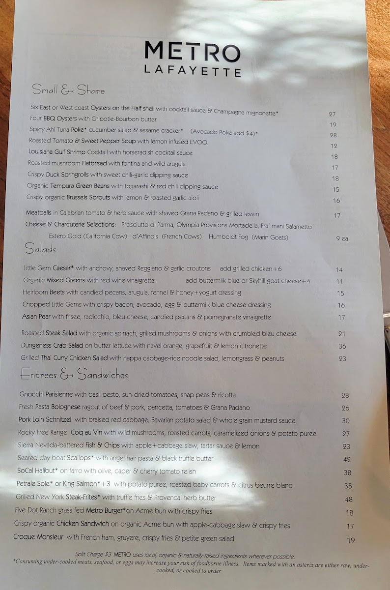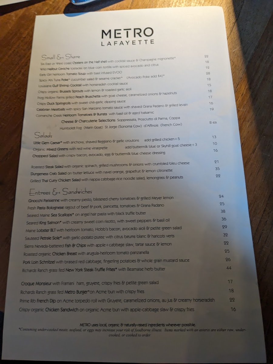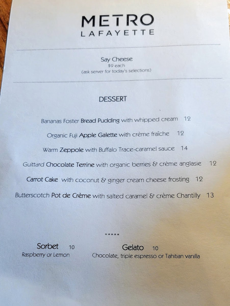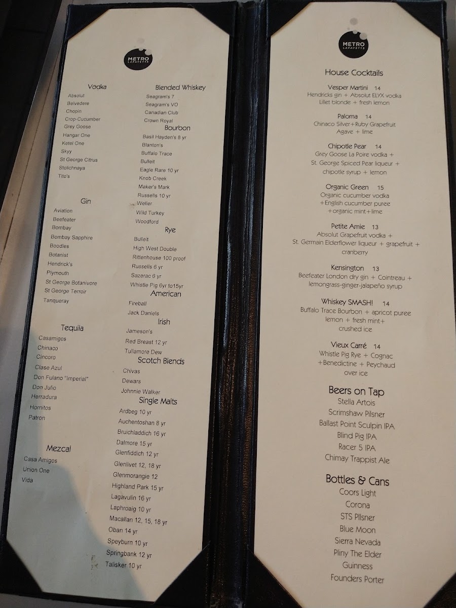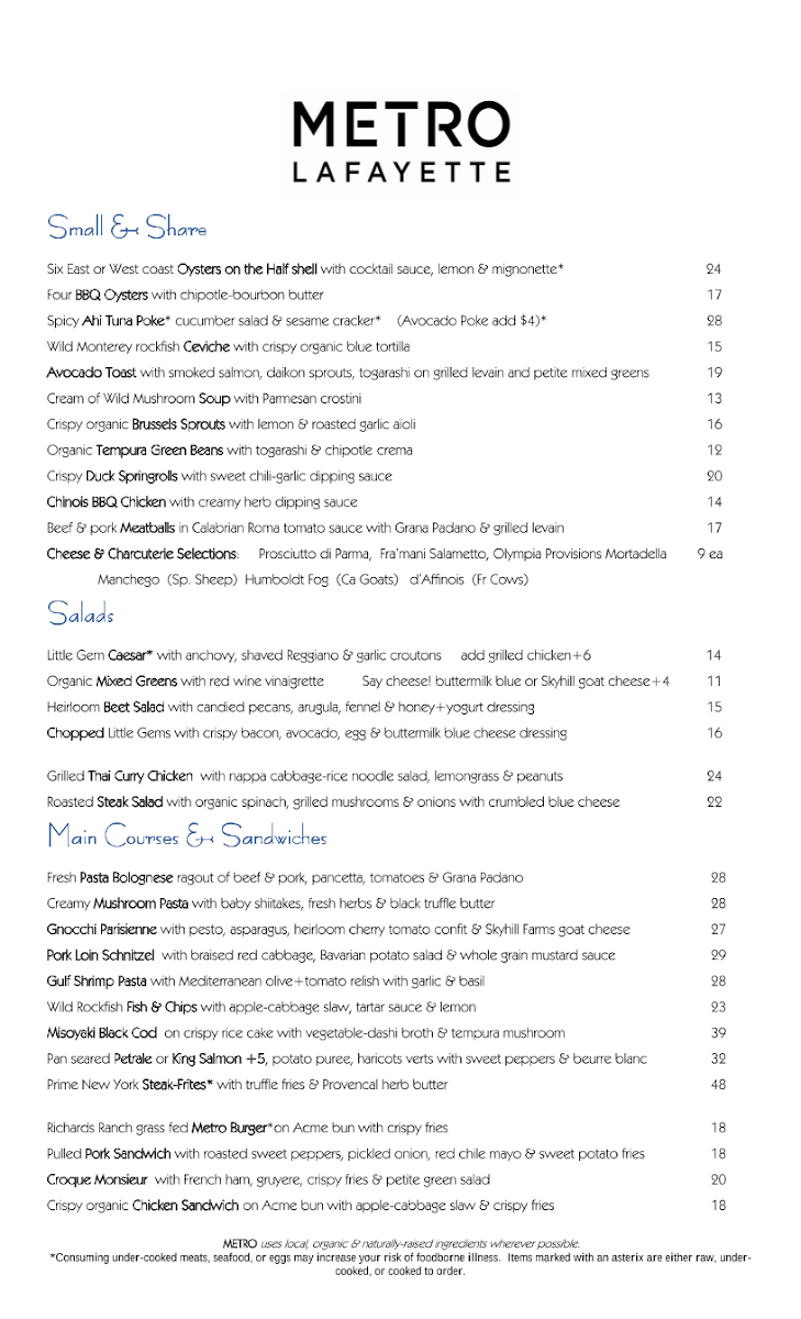 Metro Lafayette Menu